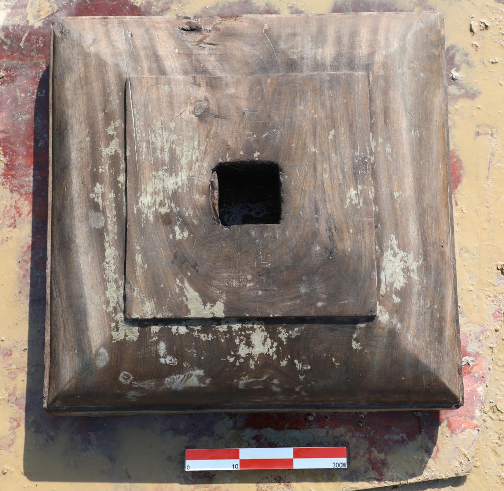 图为亭山遗址北区发现的漆绘木柱础。