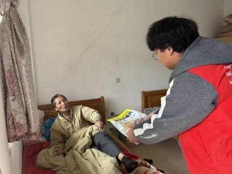 考虑到农村老人的生活需求,活动特别链接寒岩念佛堂的爱心资源,筹备了包含麦片、牛奶等物资的“暖心礼包”。为确保老人安全使用物资,外地志愿者在本地社工的帮助下,用方言详细讲解麦片的冲泡方法,特别强调“60℃温水冲泡最适宜,一次不要放太多,避免消化不良”等细节,